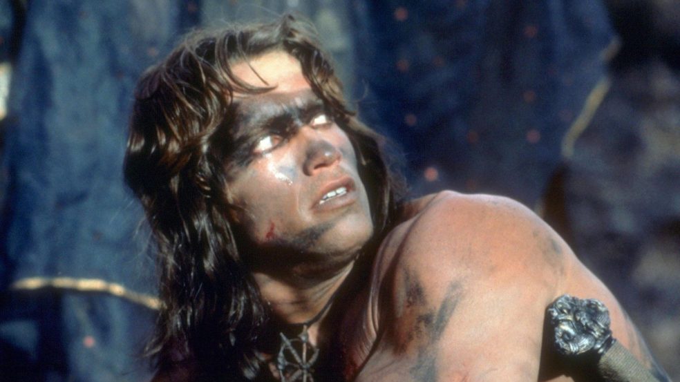 CONAN THE BARBARIAN – Orphaned boy Conan (Arnold Schwarzenegger) is enslaved after his village is destroyed by the forces of vicious necromancer Thulsa Doom (James Earl Jones), and is compelled to push “The Wheel of Pain” for many years. Once he reaches adulthood, Conan sets off across the prehistoric landscape of the Hyborian Age in search of the man who killed his family and stole his father’s sword. With beautiful warrior Valeria (Sandahl Bergman) and archer Subotai (Gerry Lopez), he faces a supernatural evil.